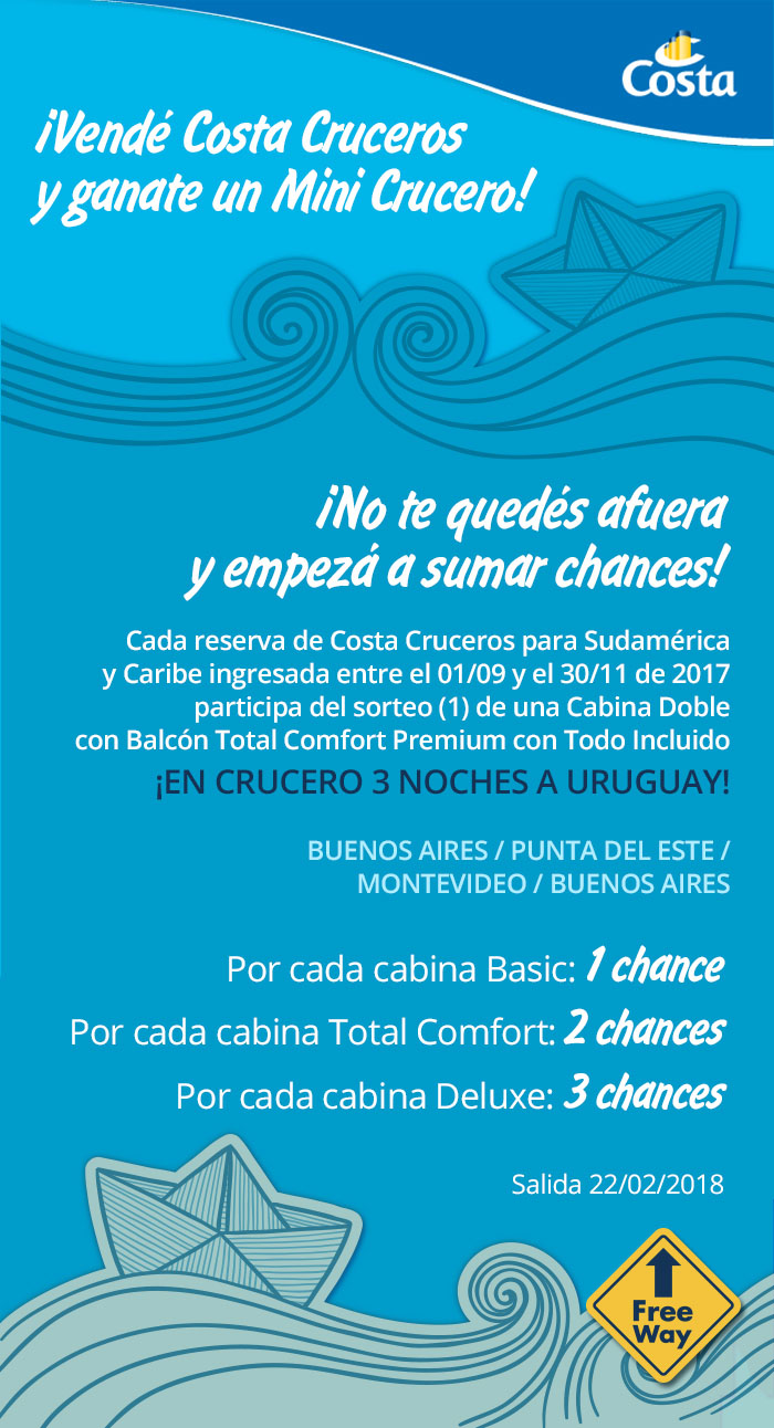 ¡Promo Cruceros Costa y Free Way! ¡Particiá y ganá!