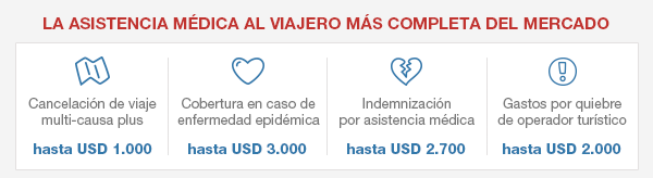 Precio de referencia por pasajero, por 4 días, producto Green hasta 75 años inclusive. Para pasajeros mayores se incrementa la tarifa un 50%. No combinable con otras promociones, precios especiales o pre compras de días. Promoción vigente hasta el 30/11/2019 inclusive. Las condiciones de los servicios se encuentran en www.assist-med.com.ar