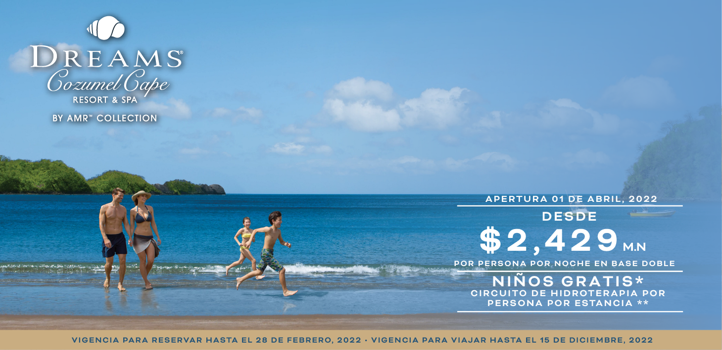 Vigencia para reservar hasta el 28 de febrero, 2022. Vigencia para viajar hasta el 15 de diciembre, 2022. Promoción Niños Gratis * aplica en la fecha del 21 de agosto al 15 de diciembre, 2022. El Circuito de hidroterapia ** aplica por persona por estancia mínima de 3 noches. Tarifas desde, dependiendo de la fecha del viaje, la cual está sujeta a cambios sin previo aviso. Tarifa en M.N. por persona por noche en base a ocupación doble. Incluye impuestos y propinas. Tarifa y promociones exclusiva para comprar y reservar en México. No son combinables con otras promociones y/o descuentos. Aplican restricciones.